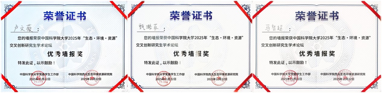 論壇設(shè)置“生態(tài)與環(huán)境領(lǐng)域組”“資源與工程領(lǐng)域組”及“弘揚科學(xué)家精神與研究生思政教育管理研討組”三大專題板塊,聚焦國家戰(zhàn)略需求與科技前沿,推動學(xué)科融合與協(xié)同創(chuàng)新。青海鹽湖所研究生緊扣青藏高原生態(tài)安全屏障、柴達(dá)木盆地資源高效利用與環(huán)境保護(hù)等關(guān)鍵科學(xué)問題等多個方向進(jìn)行學(xué)術(shù)報告和墻報展示?,F(xiàn)場討論熱烈,學(xué)術(shù)氛圍濃厚。通過這一高水平平臺,青海鹽湖所研究生不僅展示了最新的科研進(jìn)展,更與兄弟院所建立了深入的學(xué)術(shù)聯(lián)系,為后續(xù)合作奠定了良好基礎(chǔ)。參會研究生們憑借出色表現(xiàn),成績斐然。孫博妍榮獲優(yōu)秀學(xué)術(shù)報告一等獎;董博與史暉煬榮獲優(yōu)秀學(xué)術(shù)報告三等獎;馬智超、甄璐菲、盧文薇的墻報榮獲優(yōu)秀墻報獎。